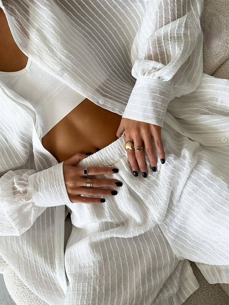 Long Sleeve Vertical Pattern Shirt Shorts Suit